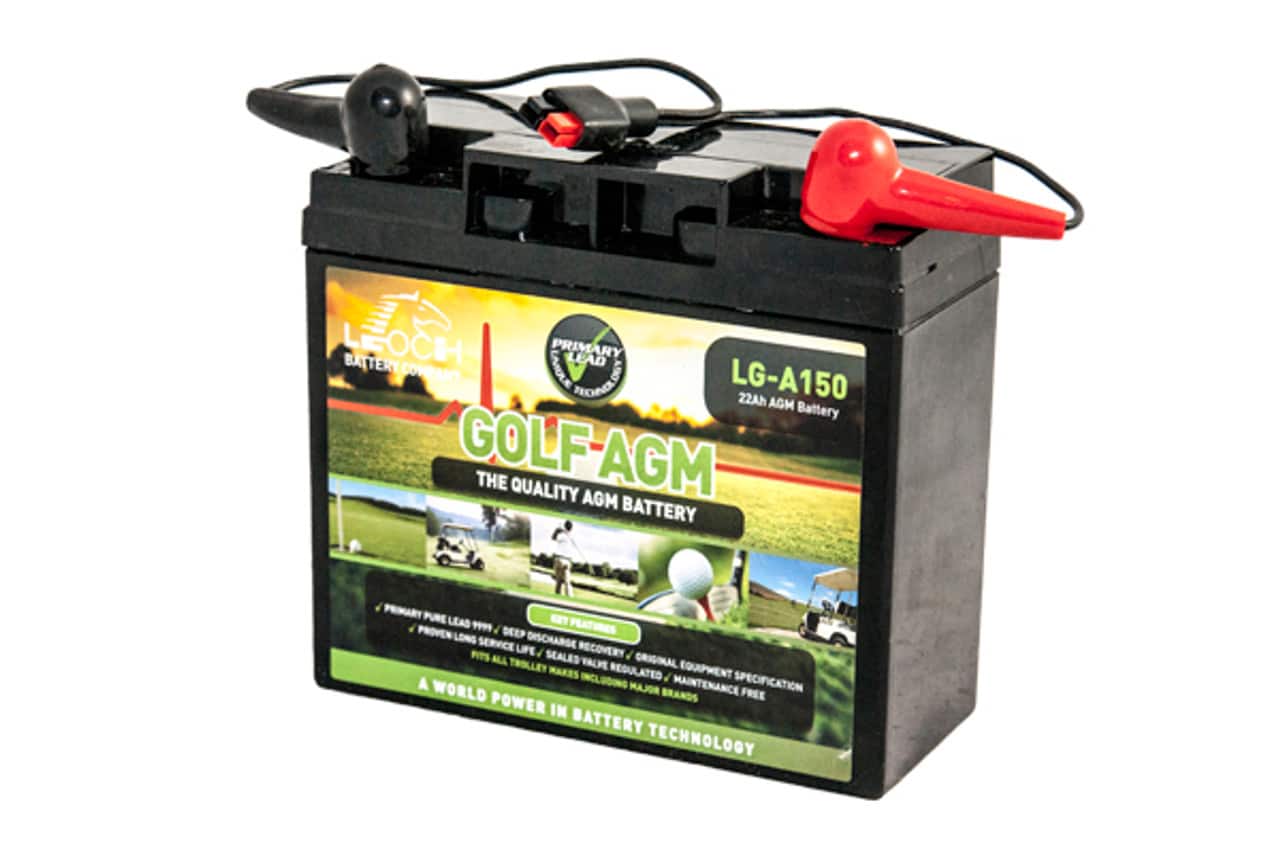 Leoch AGM Golf 12V 22AH 18 Hole Lead Acid Electric Golf Trolley Battery Torberry Leads and carry strap included.
